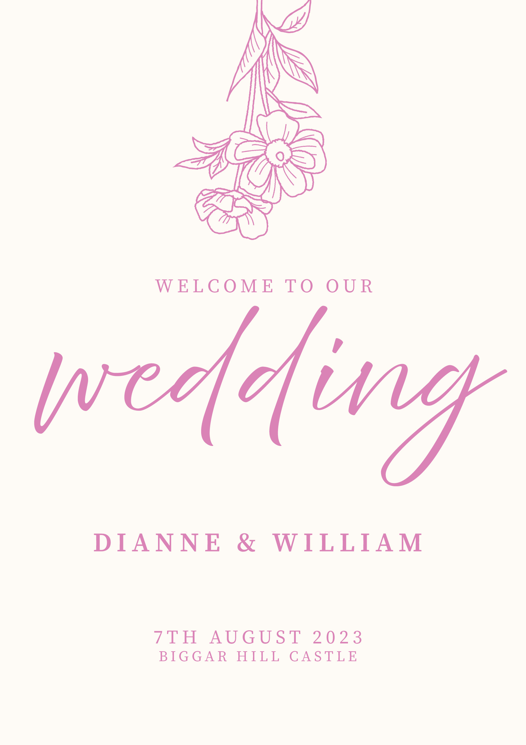 Personalised welcome sign printed on 3mm A1 foamex board. A1 size is approx 59cm x 84cm and is the perfect size to fit on a easel. The personalised welcome signs are customised to your date, venue and names and delivered within 7-10 working days to your home.
