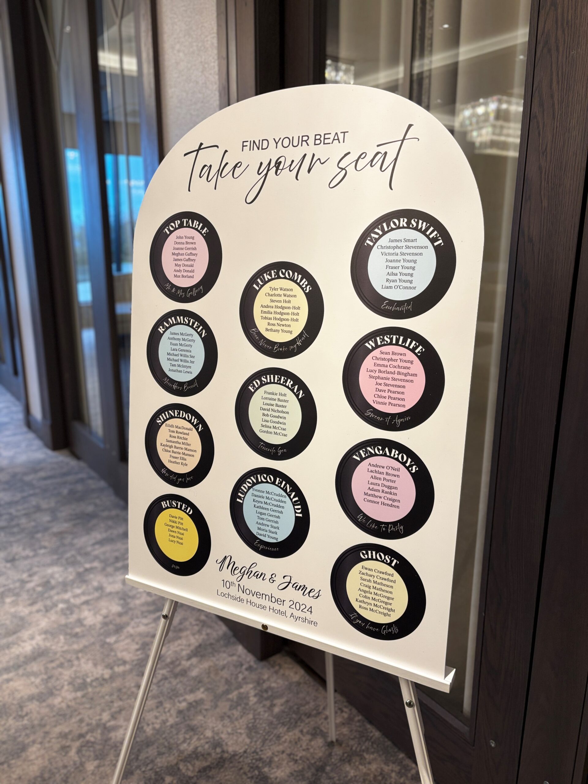 Step into the realm of modern elegance with our rounded top vinyl disc table plan. This sleek design merges the timeless allure of vinyl discs with a contemporary twist, making it a perfect addition to any event. Elevate your decor with this sophisticated table plan and impress your guests with its minimalist yet impactful aesthetic.